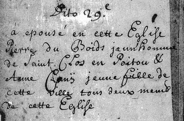 Huwelijksakte Pierre du Bois en Anne Marie Canij