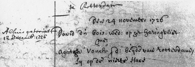 Huwelijksakte David du Bois en Agatha Vonk